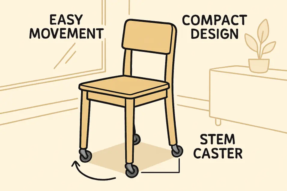 The versatility of stem casters means they find practical use in countless applications beyond homes and offices. In residential environments, you’ll frequently see them attached to dining chairs, kitchen carts, plant stands, and even beds. For office settings, stem casters are nearly universal on desk chairs, but they’re also a staple on modular workstations, printer tables, and AV carts.
